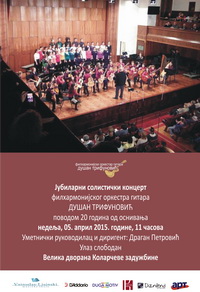 - Obezbedili smo 20 ulaznica korisnicima Gerontološkog centra Beograd za Jubilarni solistički koncert filharmonijskog orkestra gitara Muzičke škole Vatroslav Lisinski, DUŠAN TRIFUNOVIÆ, povodom 20 godina osnivanja.